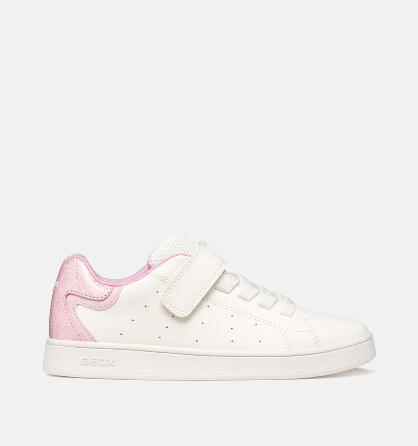 Deze coole sneakers voor meisjes zien er niet alleen keileuk uit, ze hebben ook nog eens een hoog comfortlevel! Deze witte meisjessneakers hebben de gepatenteerde Geox-zolen, waardoor zweet wordt afgevoerd via microgaatjes in de buitenzolen. Zo blijven kindervoeten de hele dag lang droog, zelfs tijdens het rennen, klimmen, spelen en springen! Door het comfort van deze ademende kindersneakers voor meisjes is geen avontuur te gek meer. Je zal voelen dat de hiel van deze Geox sneakers licht verstevigd is. Dat ...